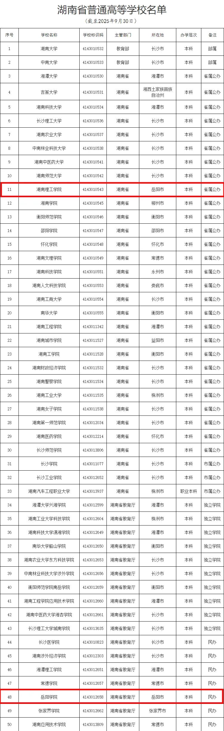 湖南省教育廳公布最新名單!岳陽有這7所高校